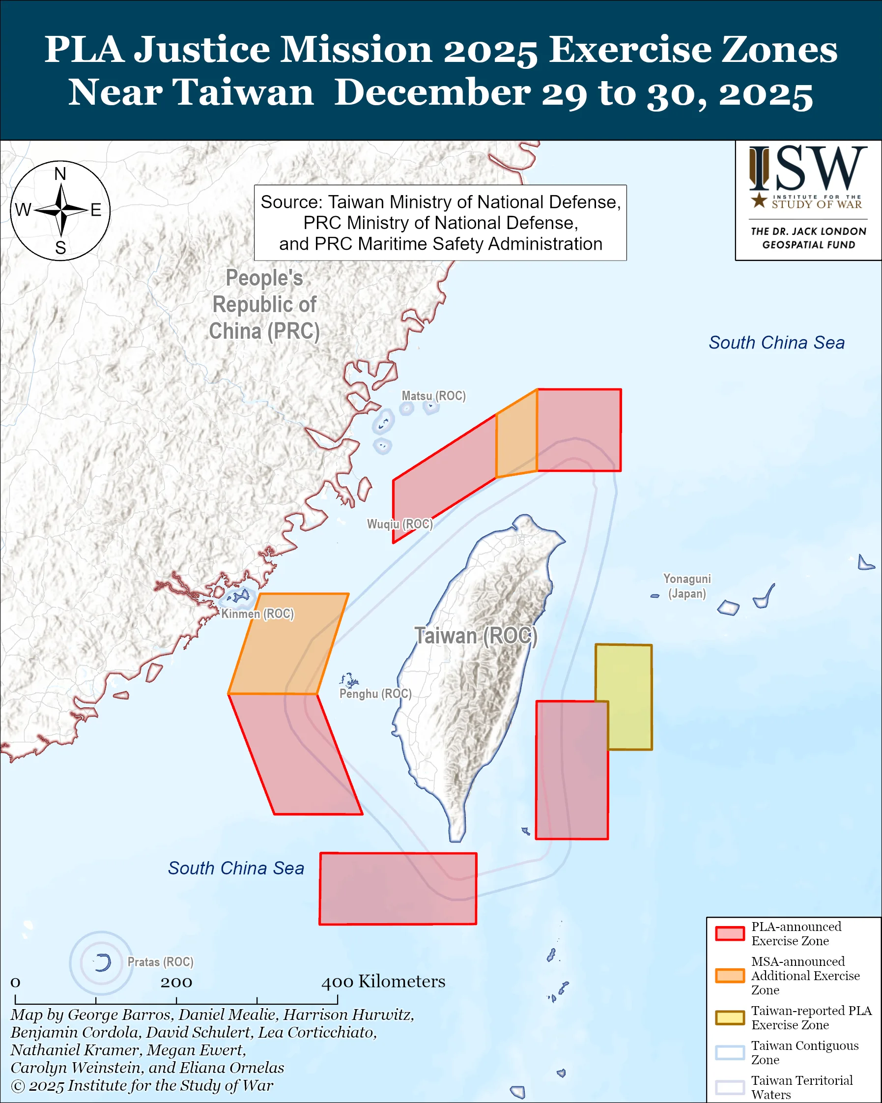 On December 29, 2025, China launched Justice Mission 2025, a series of military drills in the South China Sea surrounding Taiwan. These drills represent an escalation in tensions between China and Taiwan and its allies, Japan, South Korea, and the United States.
